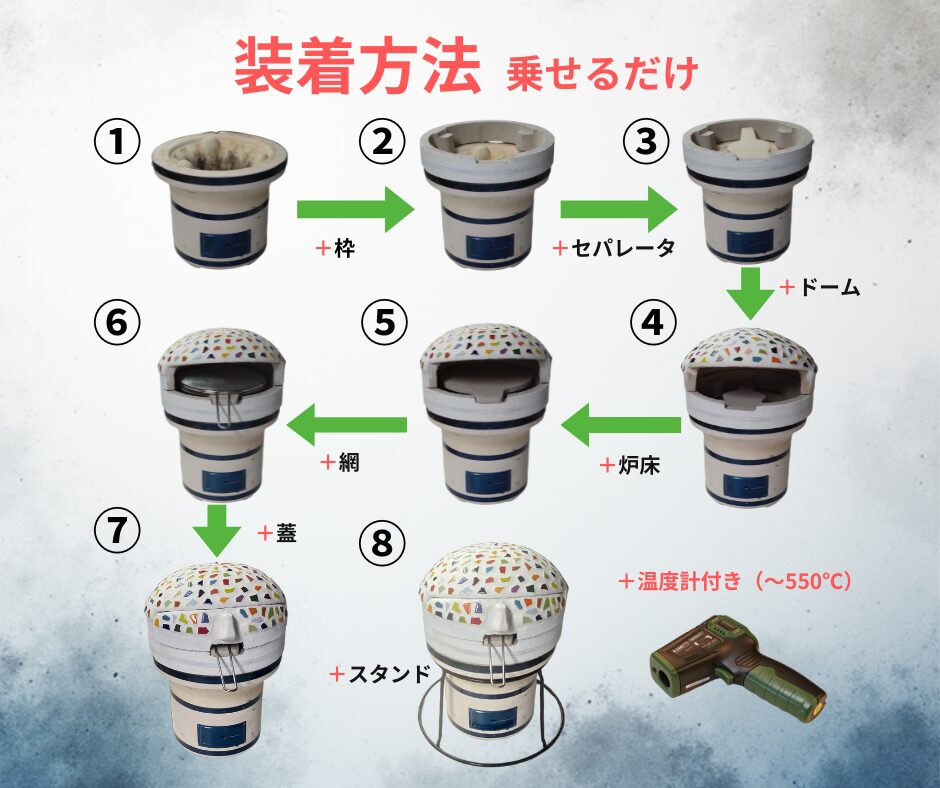 ✅ 七輪・温度計(ハンディタイプ)・焼き網付き